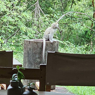 There where animals, like monkeys just roaming around near the Lodges, and my last morning at the Lodge, when I had breakfast outside, I had company, these little monkeys where roaming all over outside of the breakfast area.
